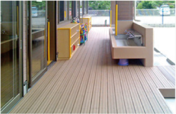 (写真は天然木からストランデックス合成木へ張り替えている様子です。)