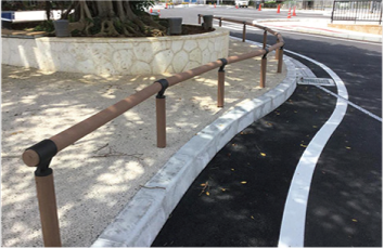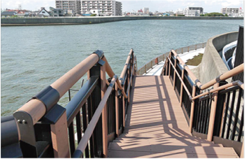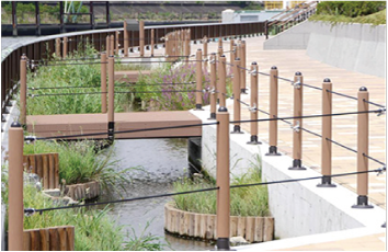 (写真は天然木からストランデックス合成木へ張り替えている様子です。)